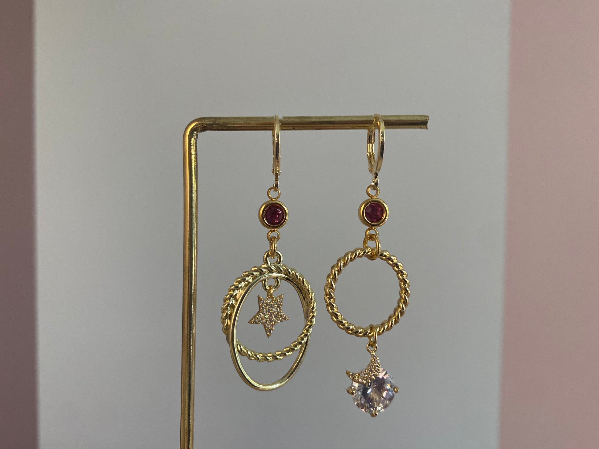 De Noelle oorbellen vormen samen een speels en feestelijk geheel. De ene kant heeft een zirkonia ster, de andere een maantje – samen zorgen ze voor een subtiele kersttwist zonder te overdrijven.